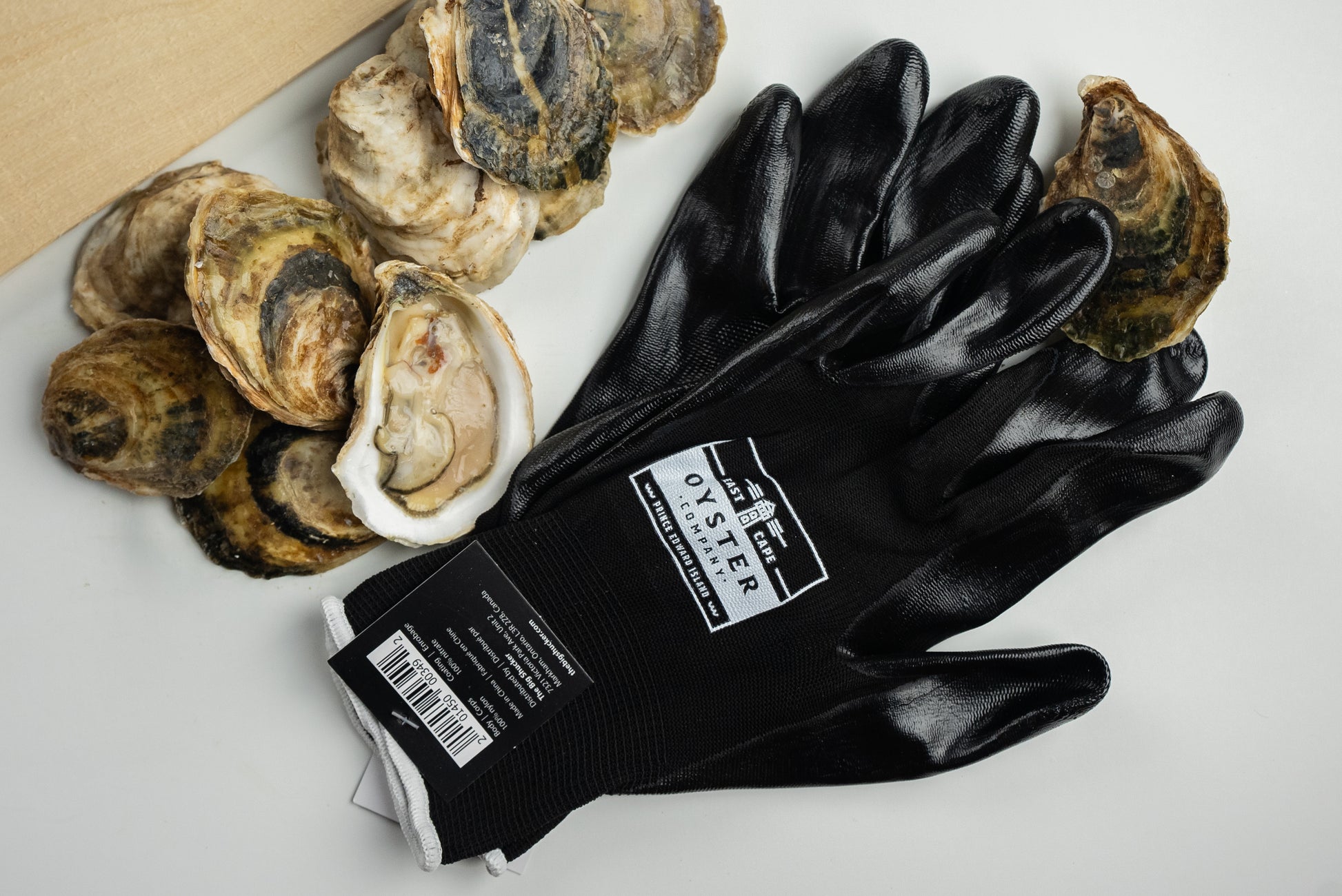 Protect your hands in style with the East Cape Oyster Shucking Gloves. Crafted from durable material, these gloves provide safety and comfort while handling oysters. Designed with flexibility in mind, they allow for a secure grip and precise shucking. Featuring the East Cape Oyster logo on the cuff, these gloves add a touch of sophistication to your seafood prep routine. Whether you're a professional shucker or a seafood enthusiast, these gloves are an essential companion for safe and efficient oyster opening.
